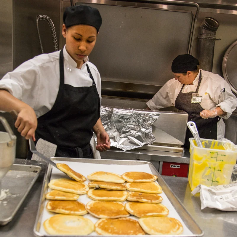 Community Kitchen is a 14-week culinary job training program for low income and unemployed adults. Participants receive training in basic food preparation skills and food safety, as well as work and life skills like interviewing, resume writing, conflict resolution and time management. Taught by two highly experienced chef instructors and a life skills instructor, students receive on-the-job training at a variety of work sites, and 92% of the graduates go on to find employment in the hospitality industry in less than a year. Many describe it as a life-changing experience.
